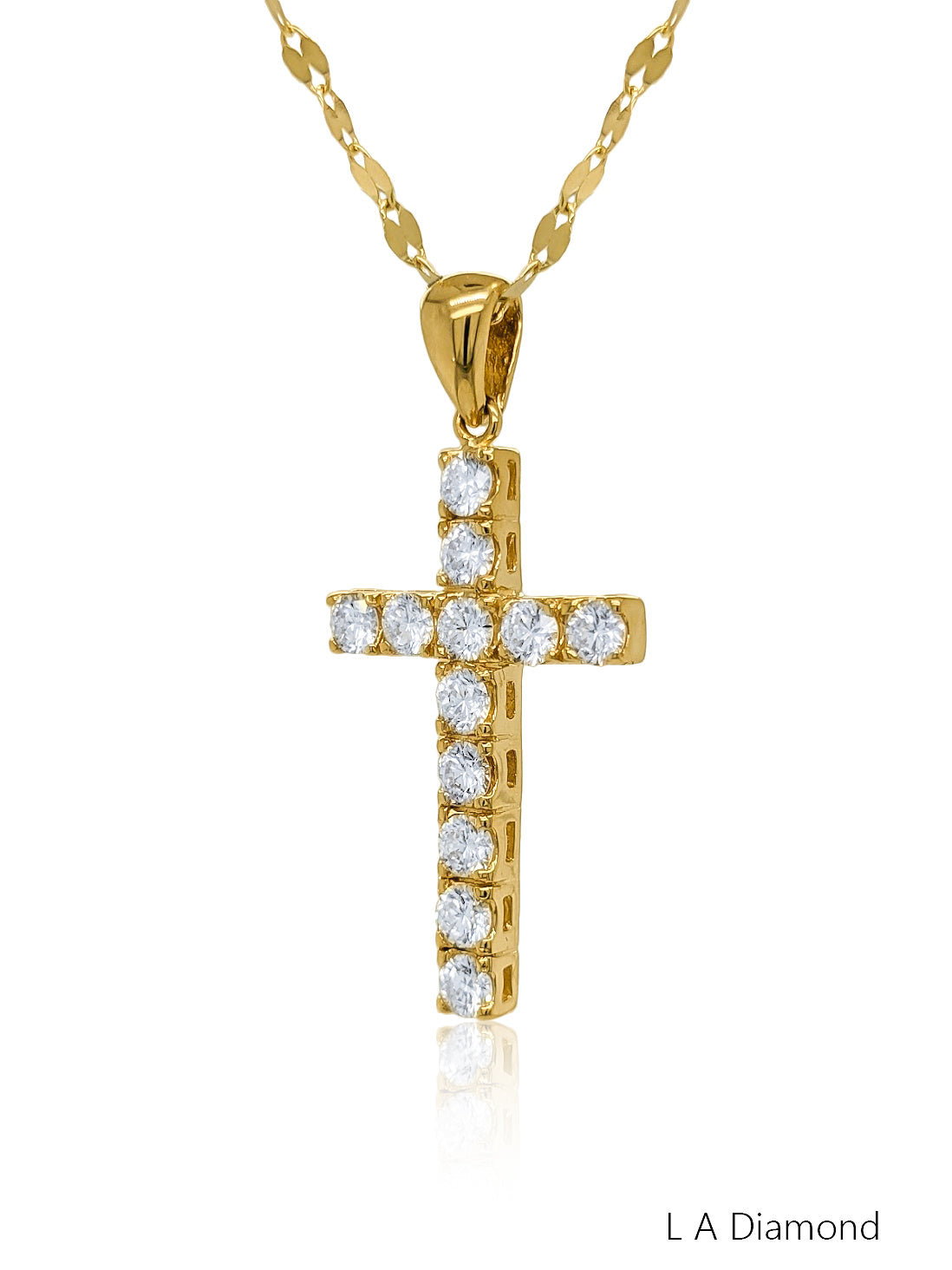 Full Diamond Coverage: Features a continuous setting of Round Brilliant diamonds across the cross's surface.