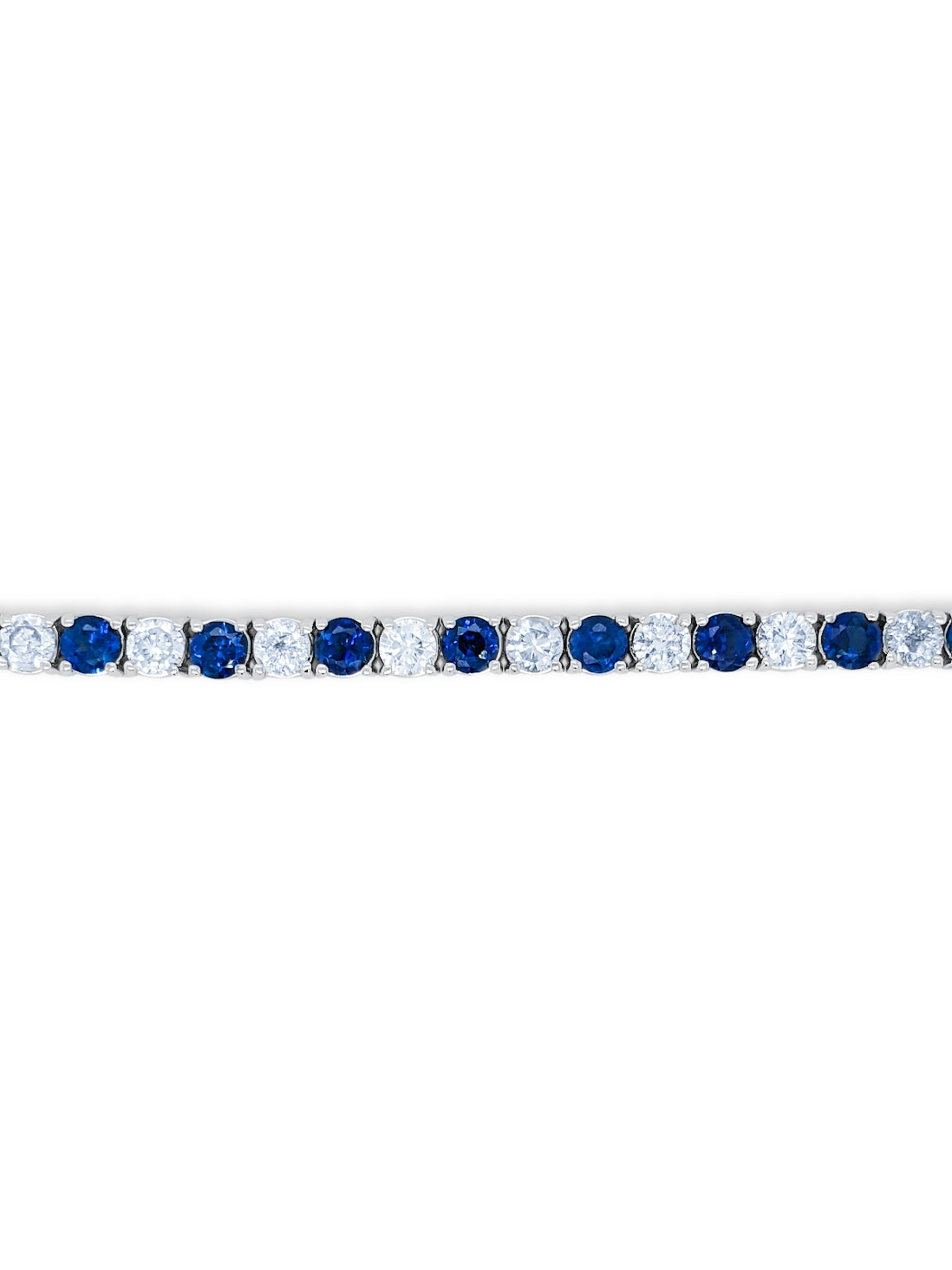 Setting or cut style: Bracelet style (likely a link or cuff) featuring diamonds and sapphires, predominantly Round Cut.
