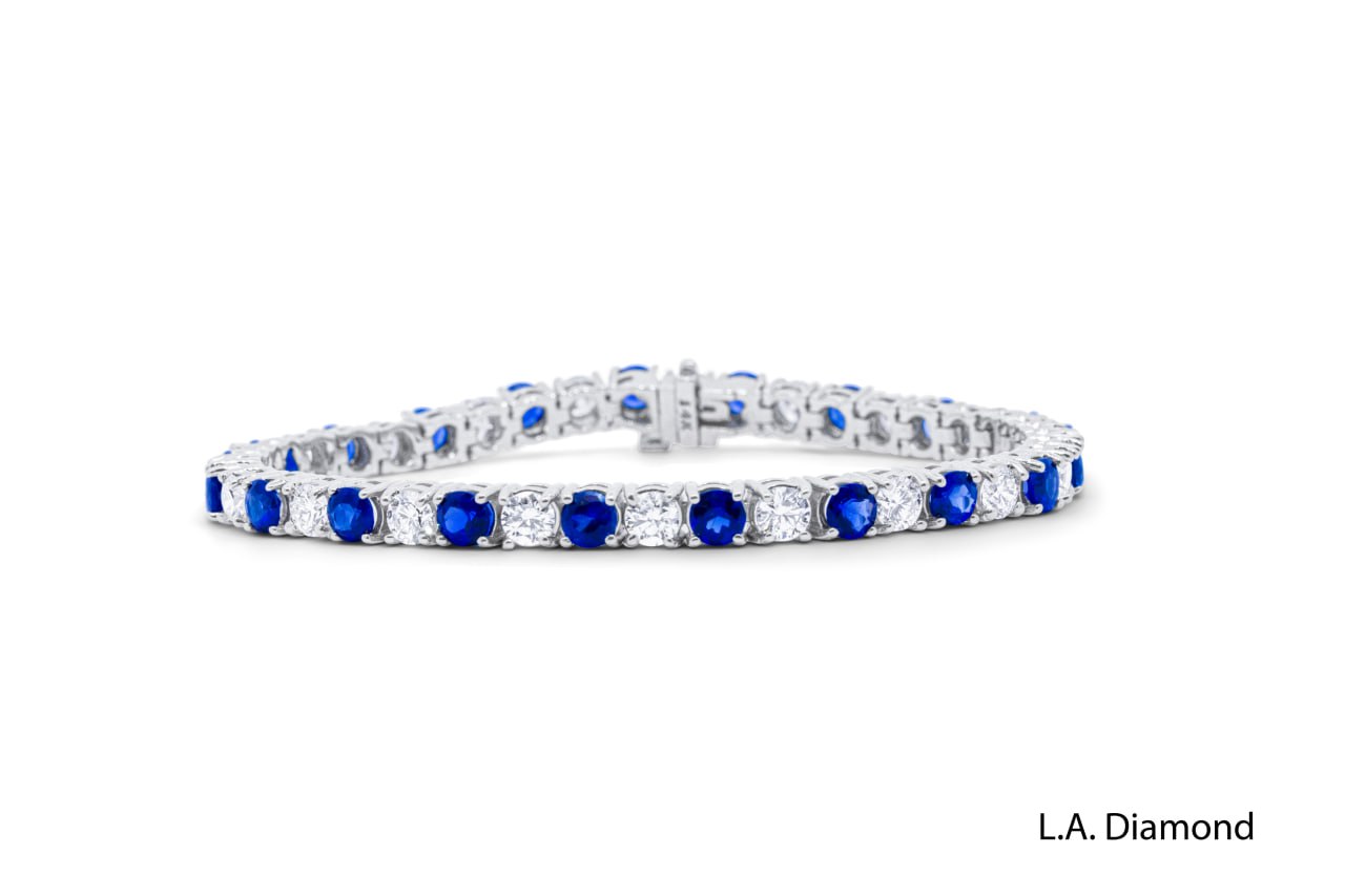 Crafted with a substantial feel and exceptional durability, the bracelet features a generous 25.21-gram gold weight, reflecting the superior quality and robust construction expected from La Diamond. The precise setting ensures that both the diamonds and sapphires, likely in a Round Cut or similar facet, achieve maximum scintillation and color saturation. This is a timeless, heirloom-quality statement piece of fine gemstone jewelry.