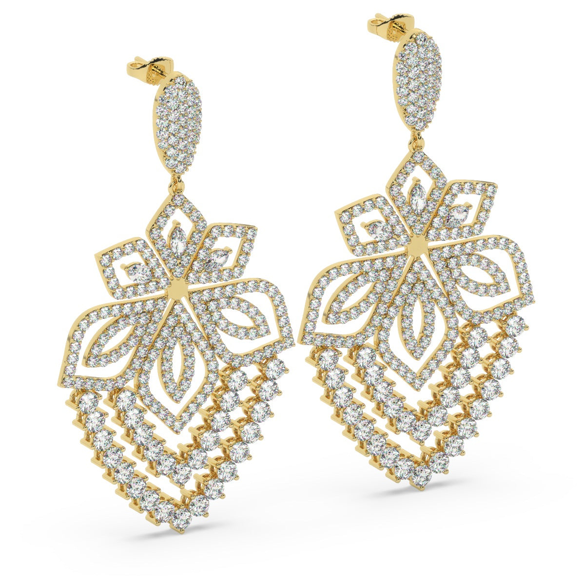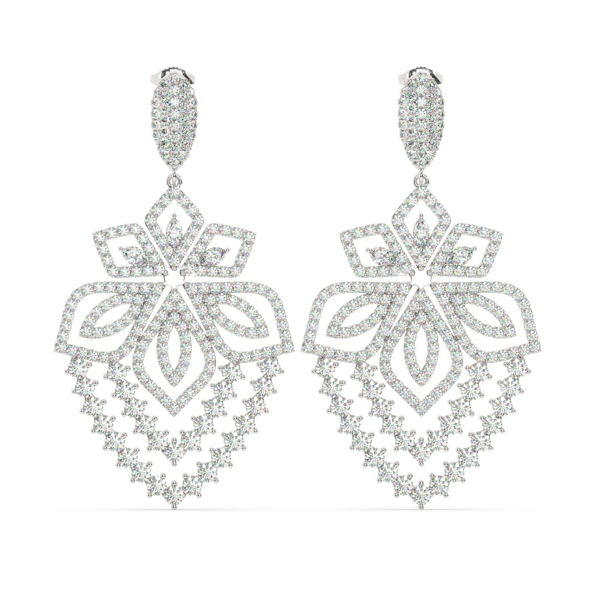 Intricate Chandelier style featuring brilliant Round Diamond cuts.