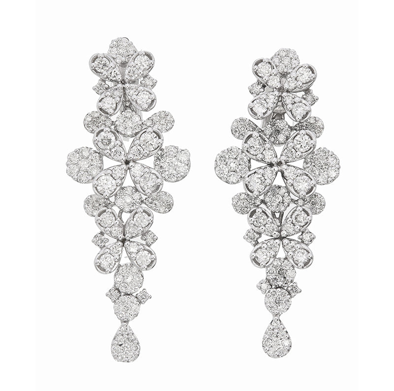 Dramatic Long Drop style featuring brilliant Round Diamond cuts.