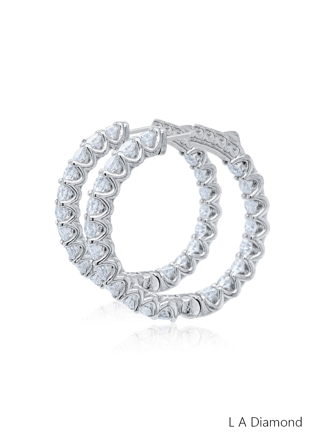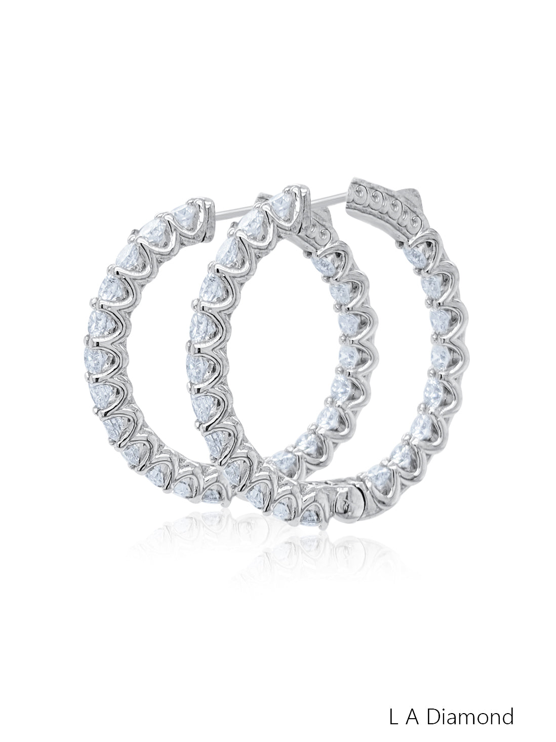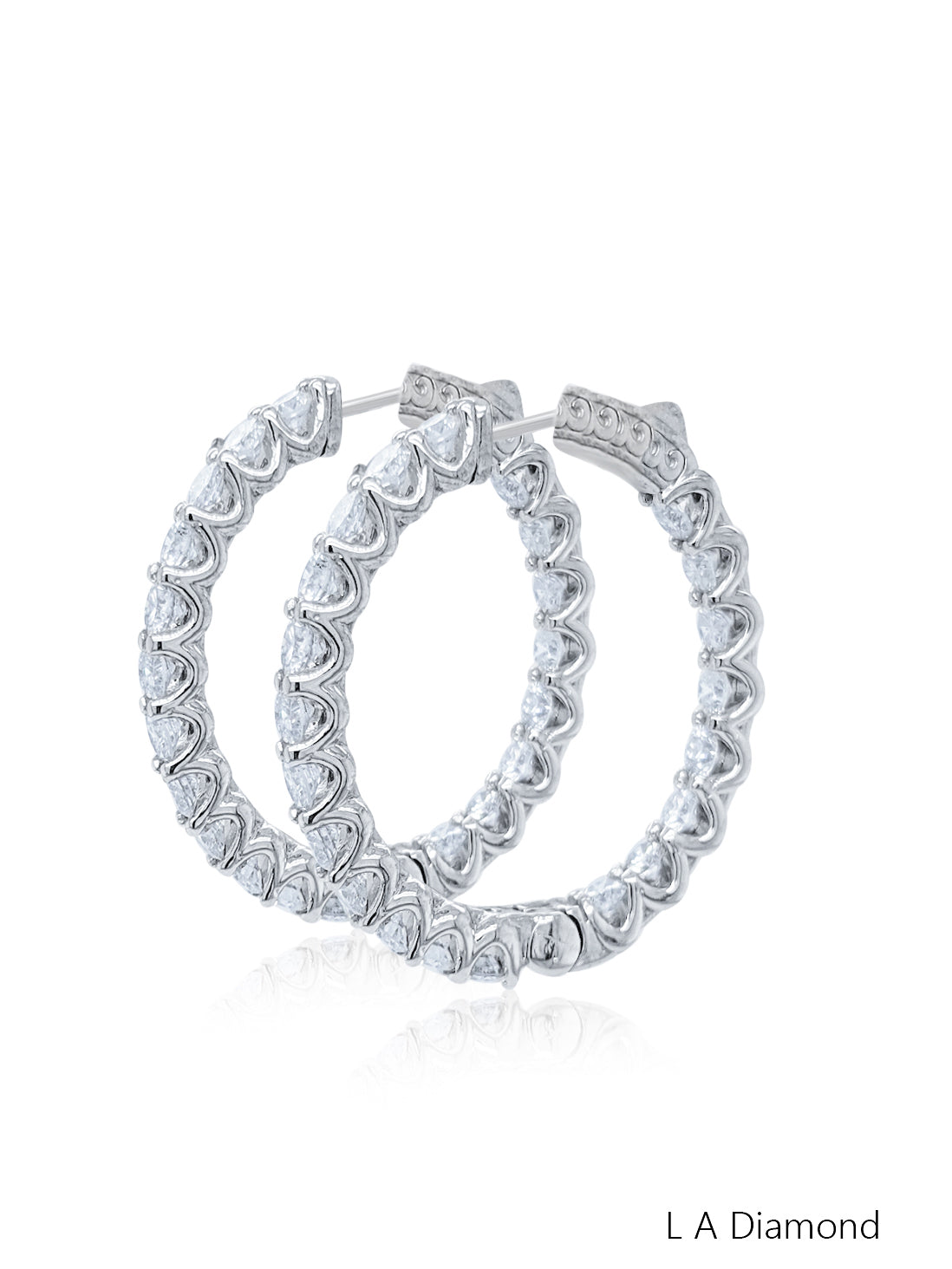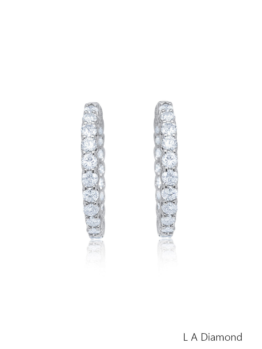 Experience the ultimate in diamond fire with the La Diamond Inside-Out Diamond Hoop Earrings (ED282). These luxurious hoops are crafted in substantial 14K White Gold and feature the sought-after "in/out" design, which ensures diamonds are set on both the front exterior and the back interior of the hoop. This unique setting maximizes sparkle and visibility from all angles.