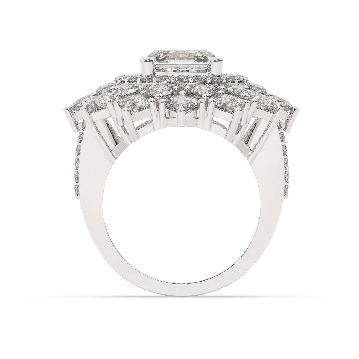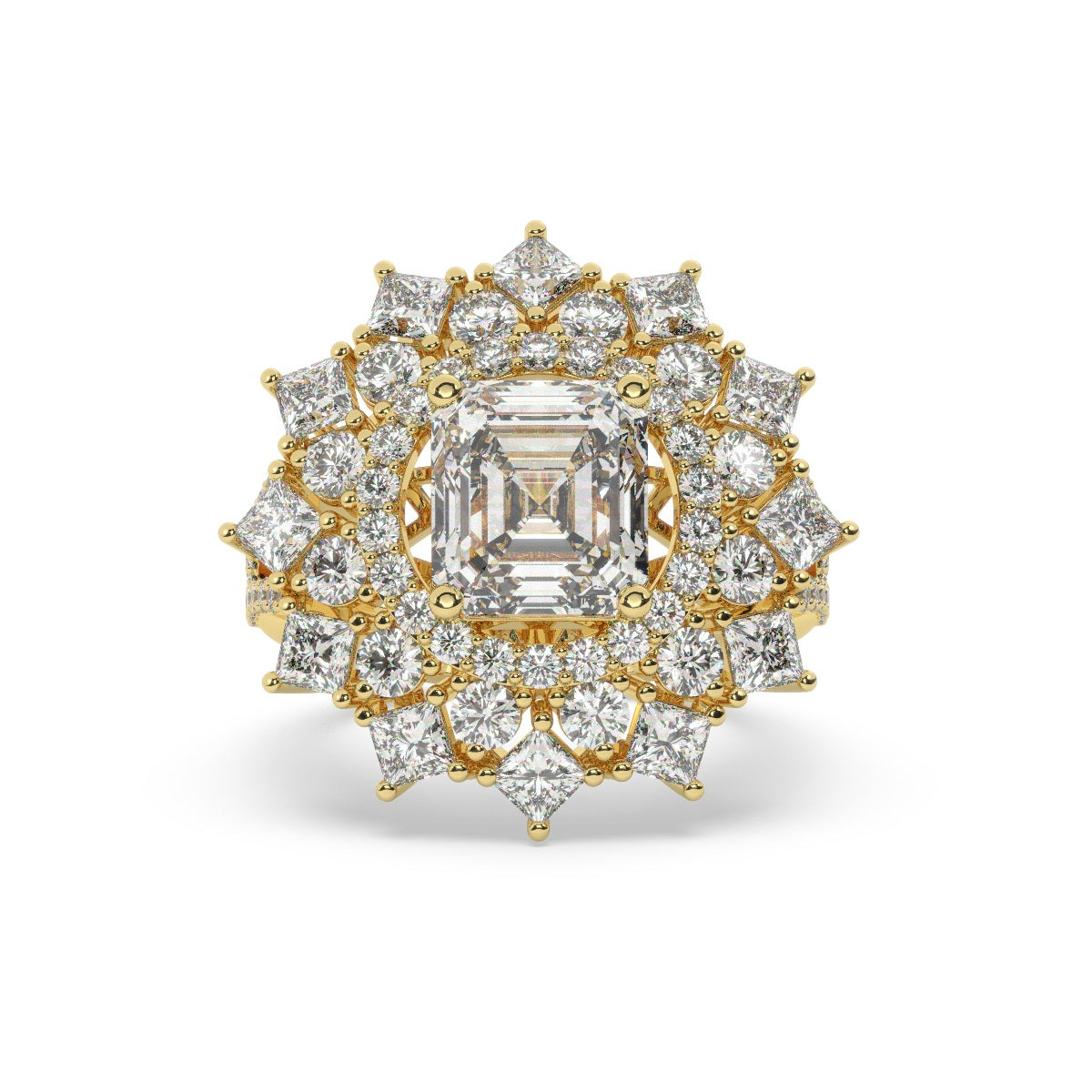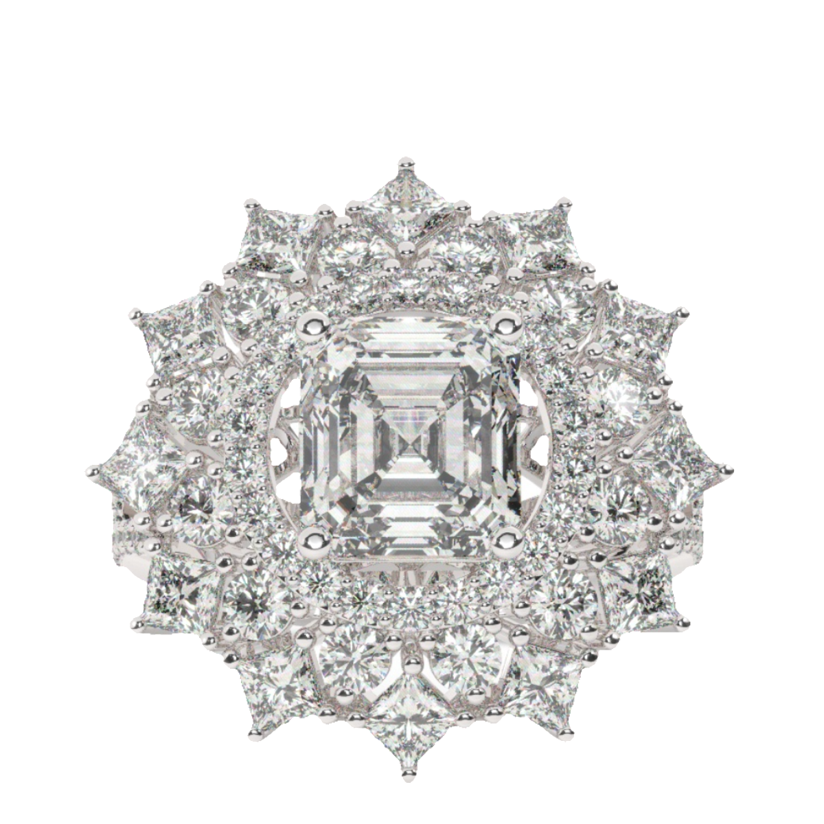 Bezel-set princess cut diamonds at each corner