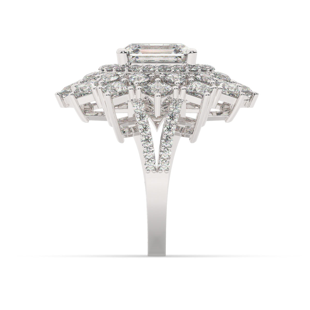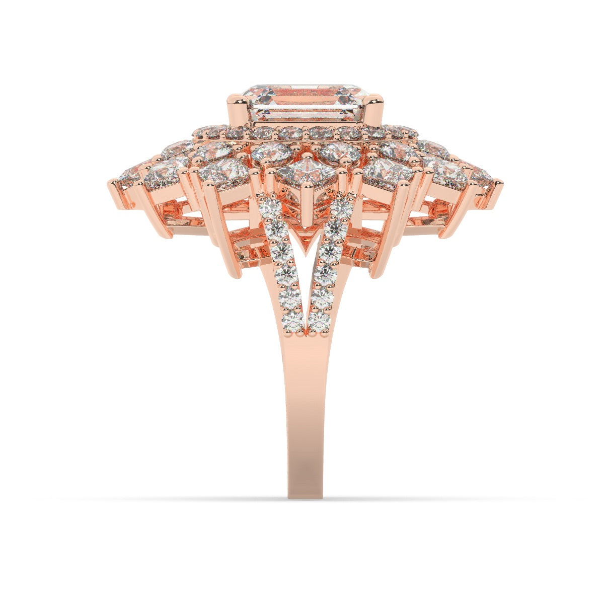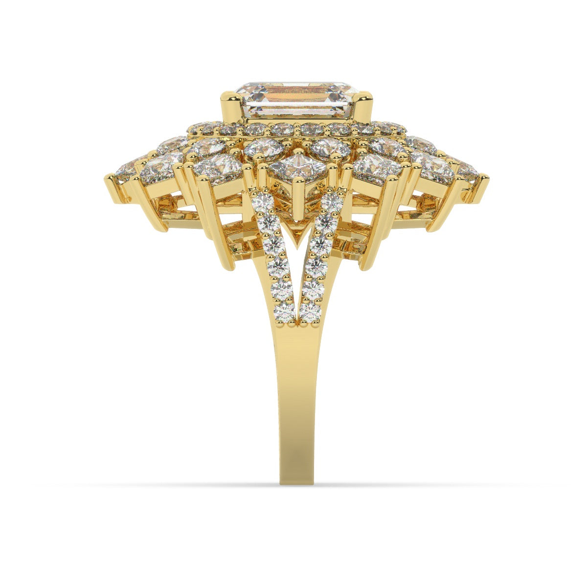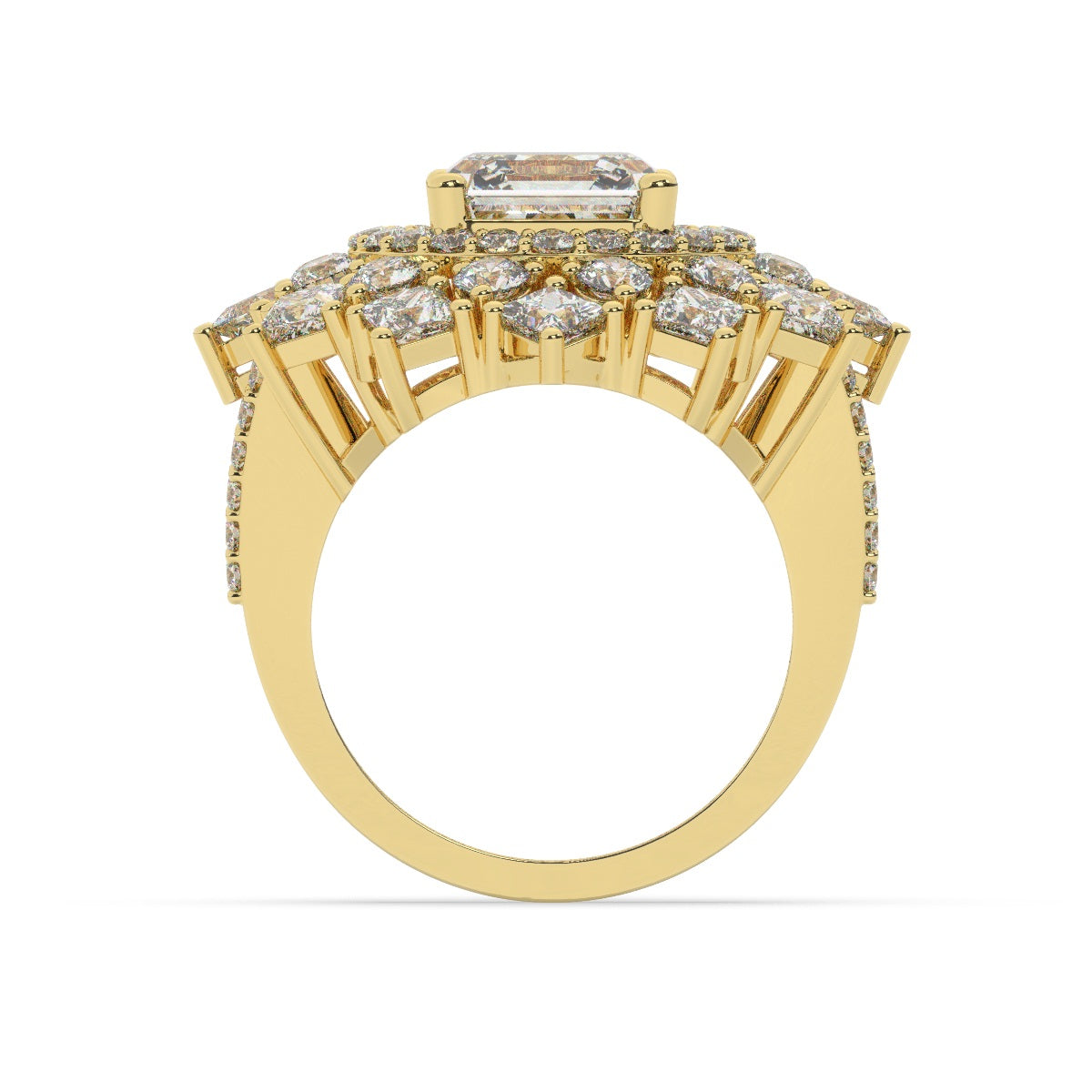 Bezel-set princess cut diamonds at each corner
