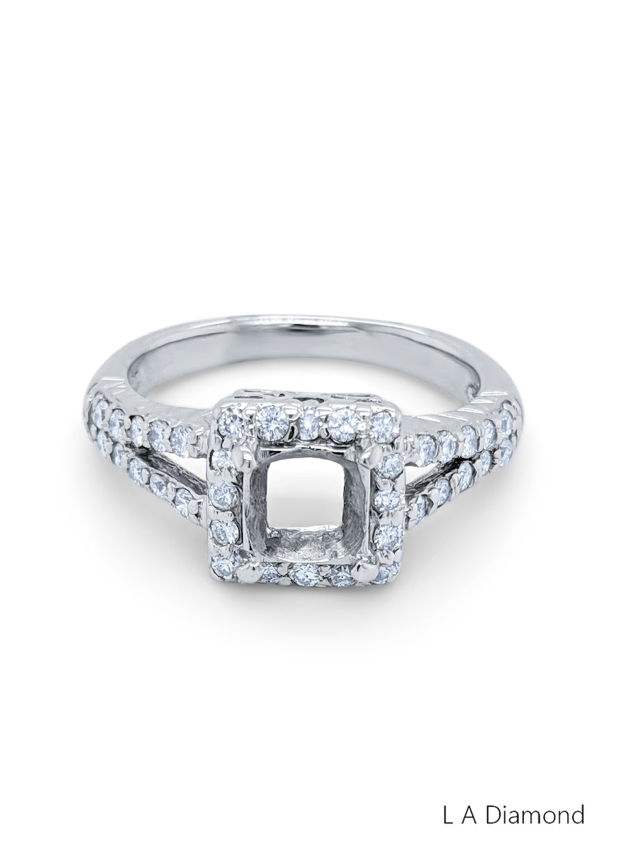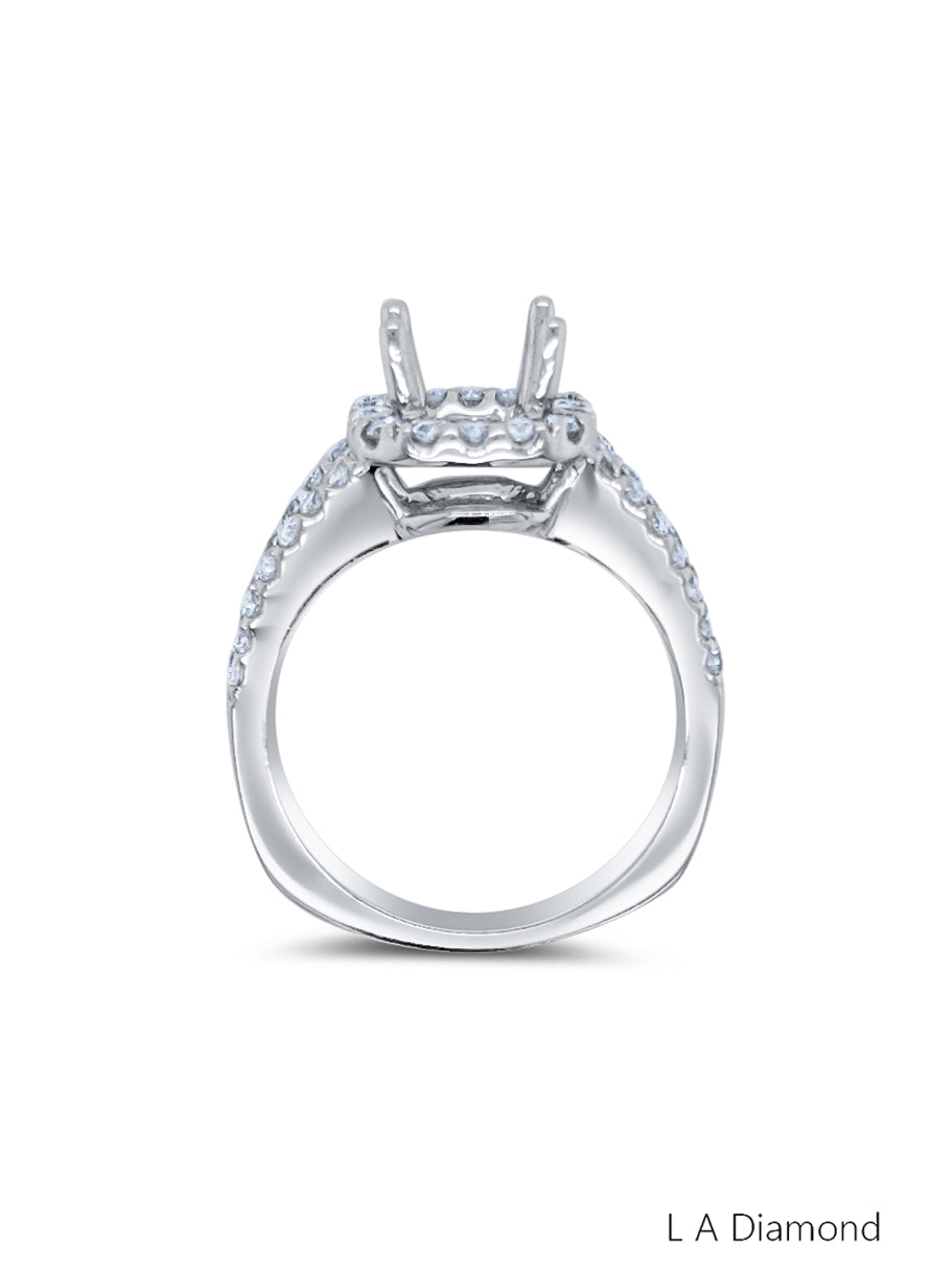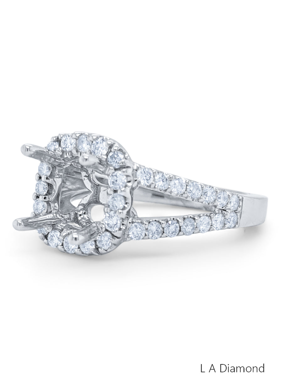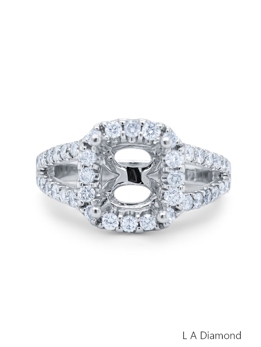 his 14K white gold semi-mount engagement ring features a 1.01-carat round cut diamond configuration set on a refined band crafted from approximately 5.50 g of gold. The balanced proportions and precision setting maximize sparkle while maintaining a comfortable, wearable profile.