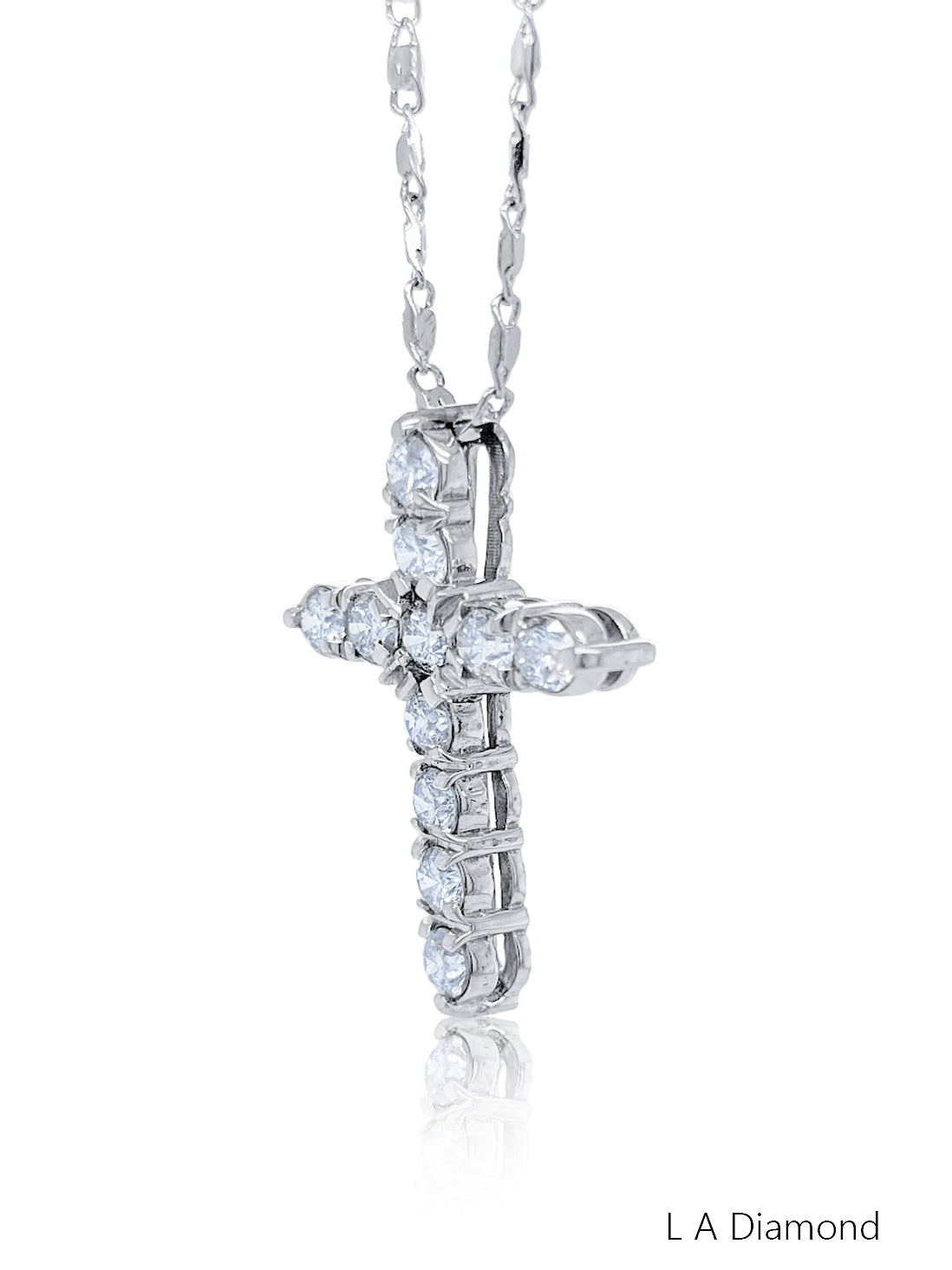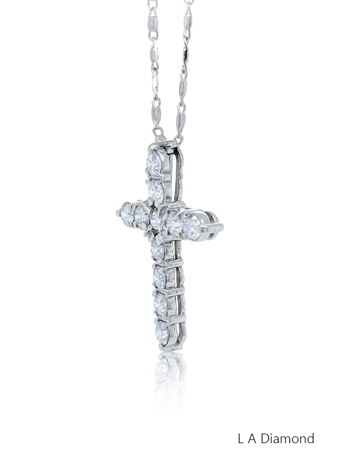 Adorn yourself with the enduring brilliance of the La Diamond Diamond Cross Pendant. This sophisticated piece is crafted in luminous 14K White Gold, featuring a classic cross silhouette meticulously set with sparkling diamonds for continuous, high-impact light reflection. The pendant showcases a substantial total diamond weight of 2.00 carats, ensuring a striking and highly visible display of sparkle.