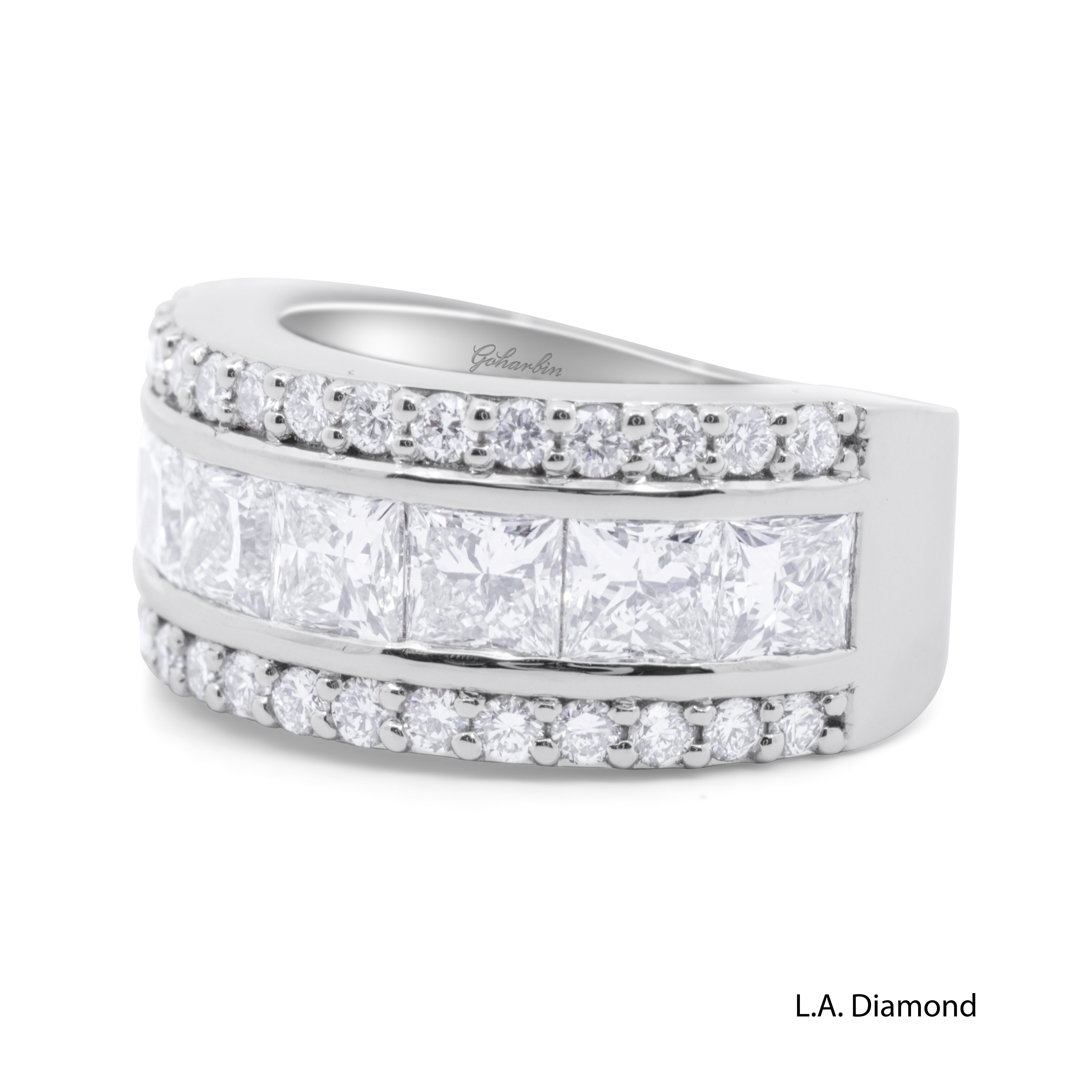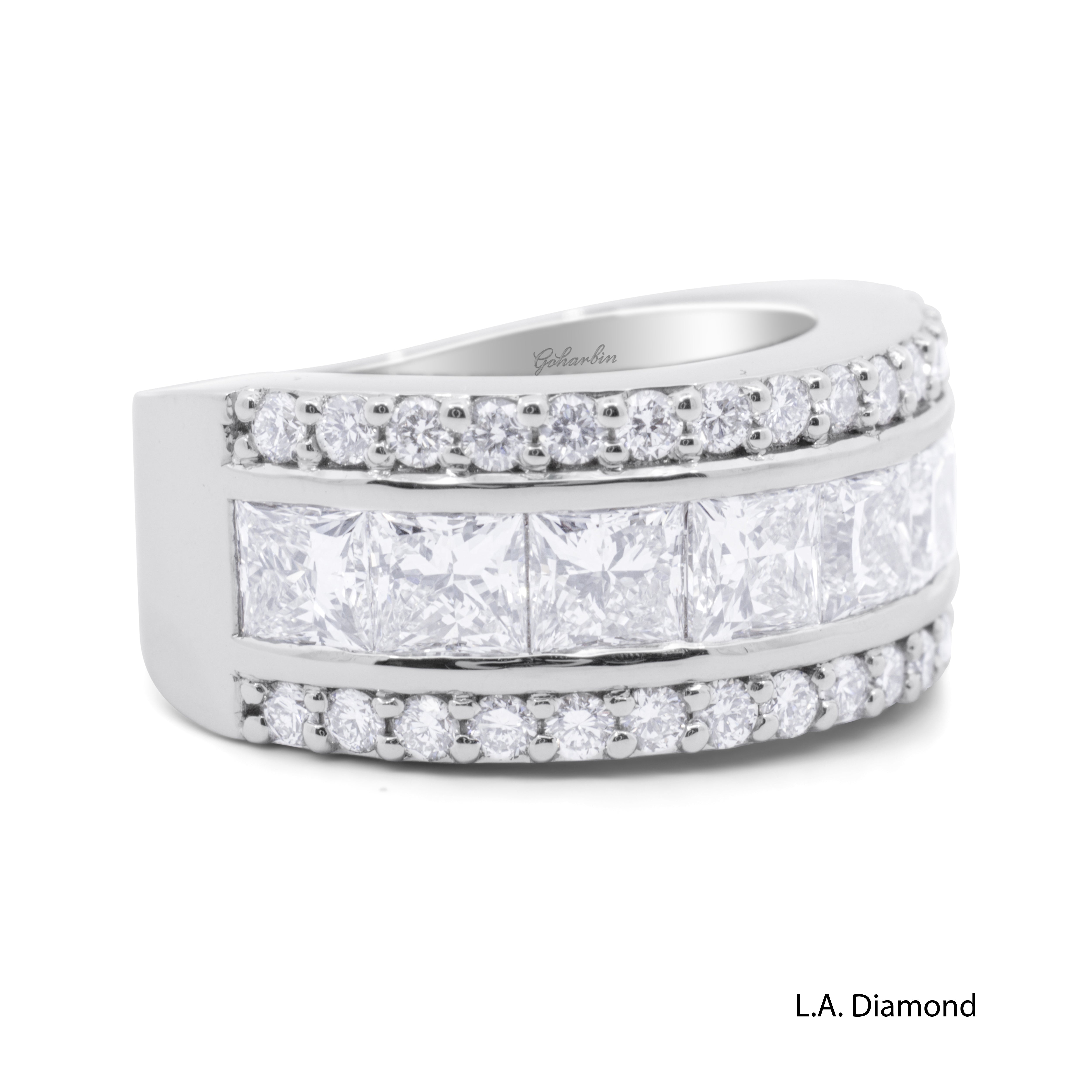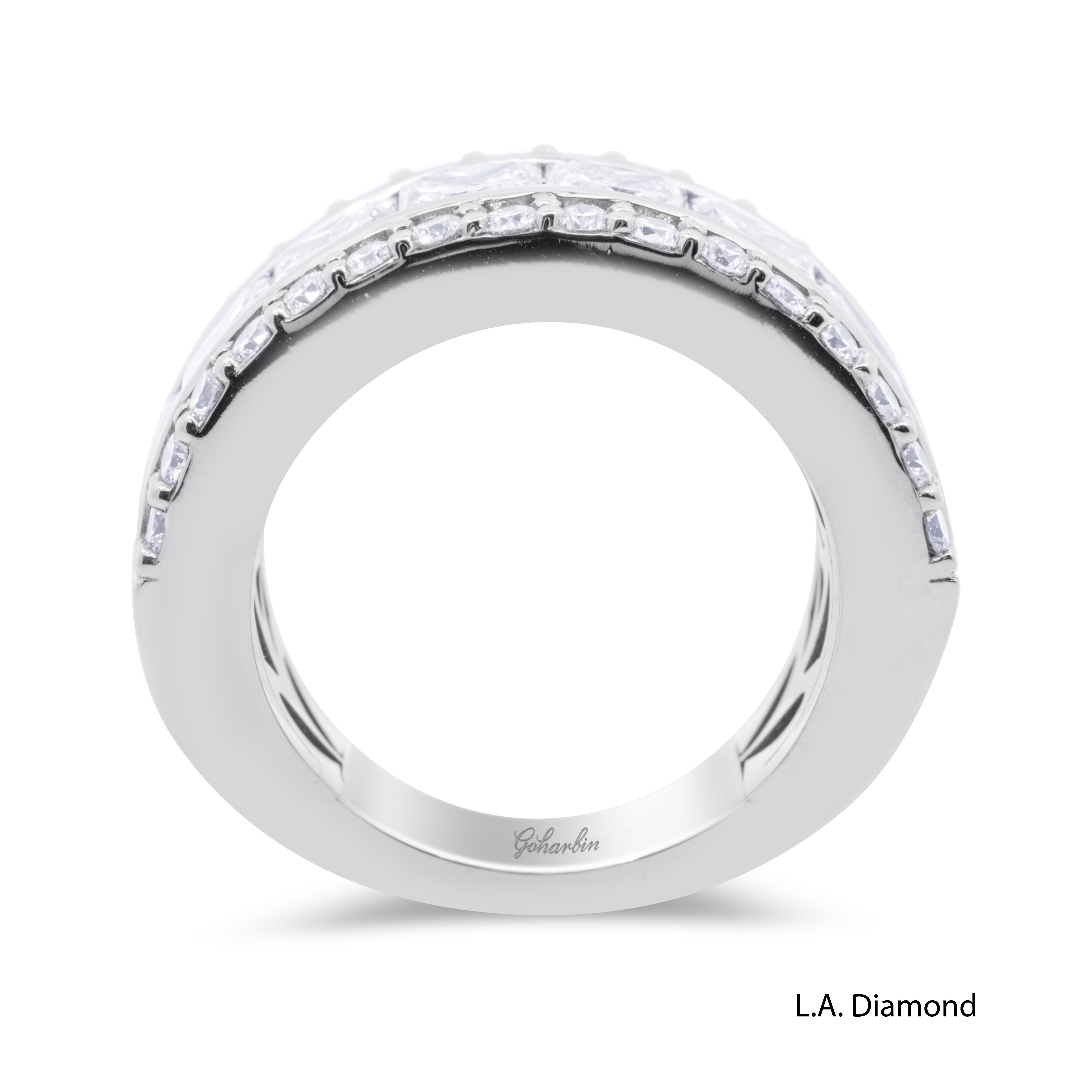 Discover the modern brilliance of the RD1018 Diamond Band, an exquisite piece featuring stunning lab-created diamonds. Crafted in robust 14K White Gold, this substantial band is set with high-quality lab diamonds totaling $1.62 carats. The description suggests a combination of Princess Cut (from "princess cut band") and Round Brilliant diamonds, creating a diverse and captivating sparkle.