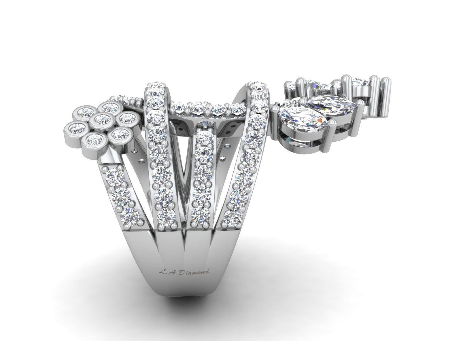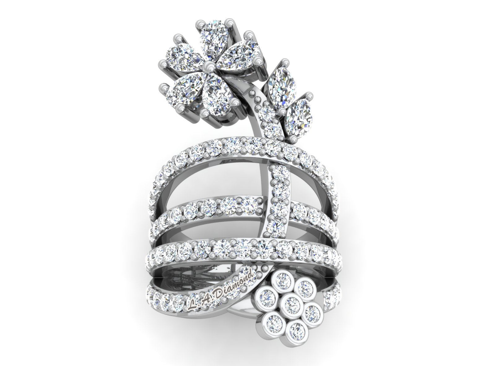 Setting or cut style: Floral Cocktail Ring or Wrap Ring featuring both Pavé-set Round Cuts and prominent Pear Cuts.