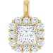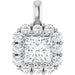 Illuminate every moment with this Elegant 1CTW Princess Cut Diamond pendant, framed by a brilliant halo to maximize sparkle. The balance of the princess shape with radiant halo diamonds offers refined elegance in one timeless design.