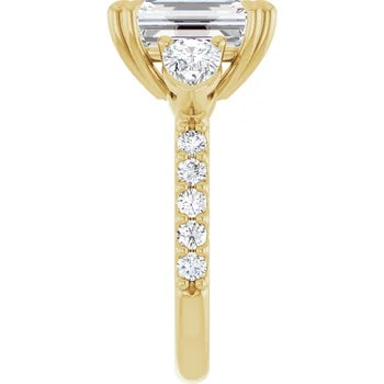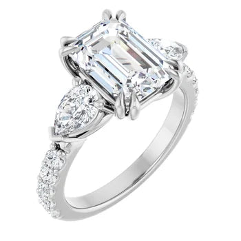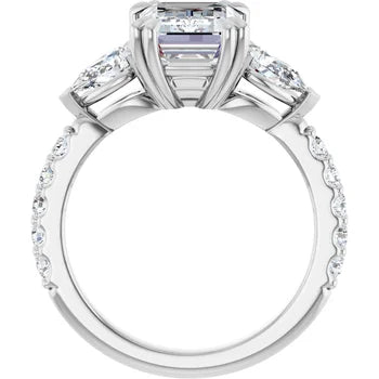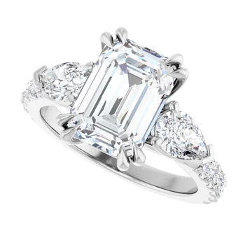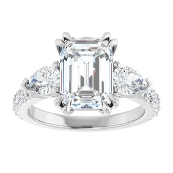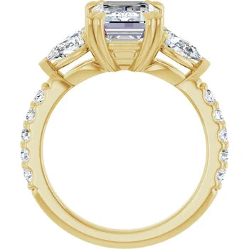Emerald Cut and Pear Side Stone Diamond Engagement Ring Set on 14k Gold