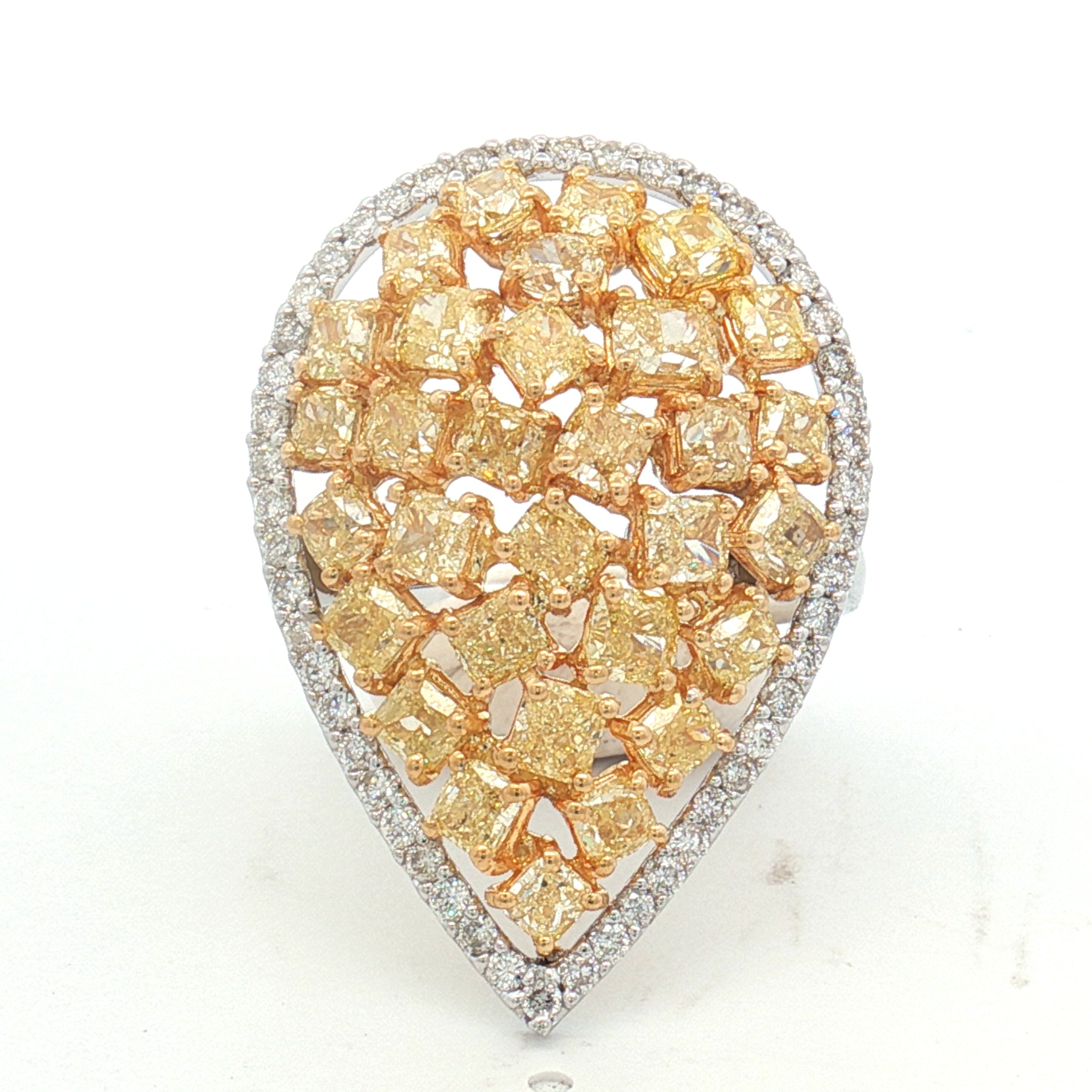 Fancy Yellow Diamond Cluster Tear Drop 14k White Gold Ring