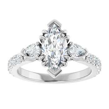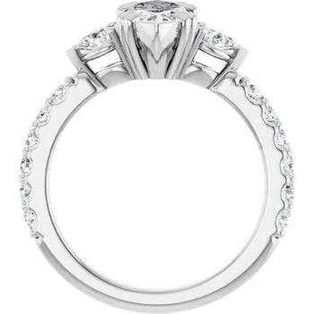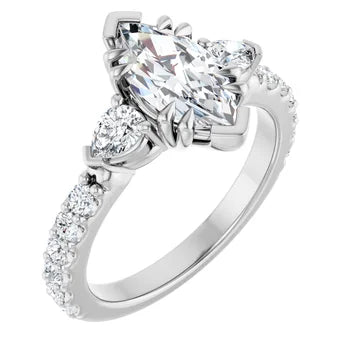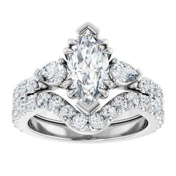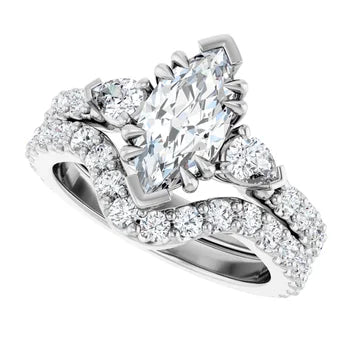 Marquise Cut and Pear Side Stone Diamond Three Stone Wedding Ring Set - Set on 14k Gold