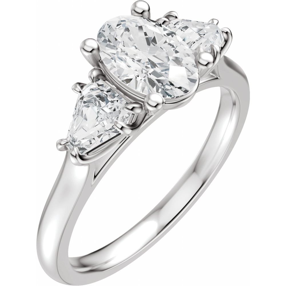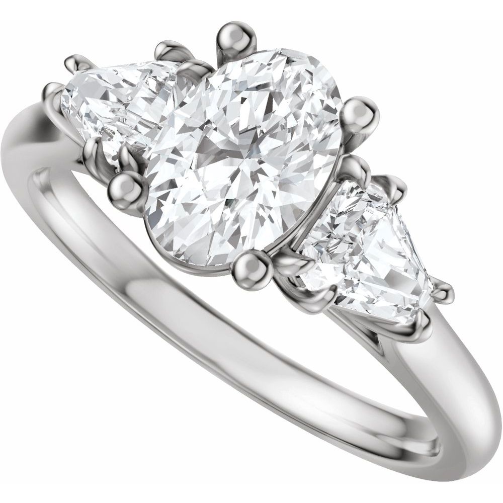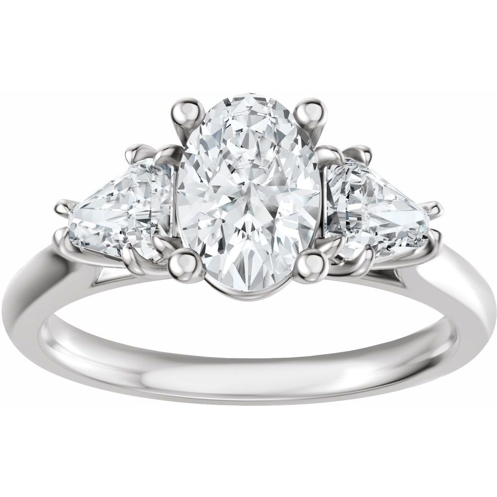 Oval Three-Stone Diamond Engagement Ring with Trillion Side Diamonds - Set on 14k Gold
