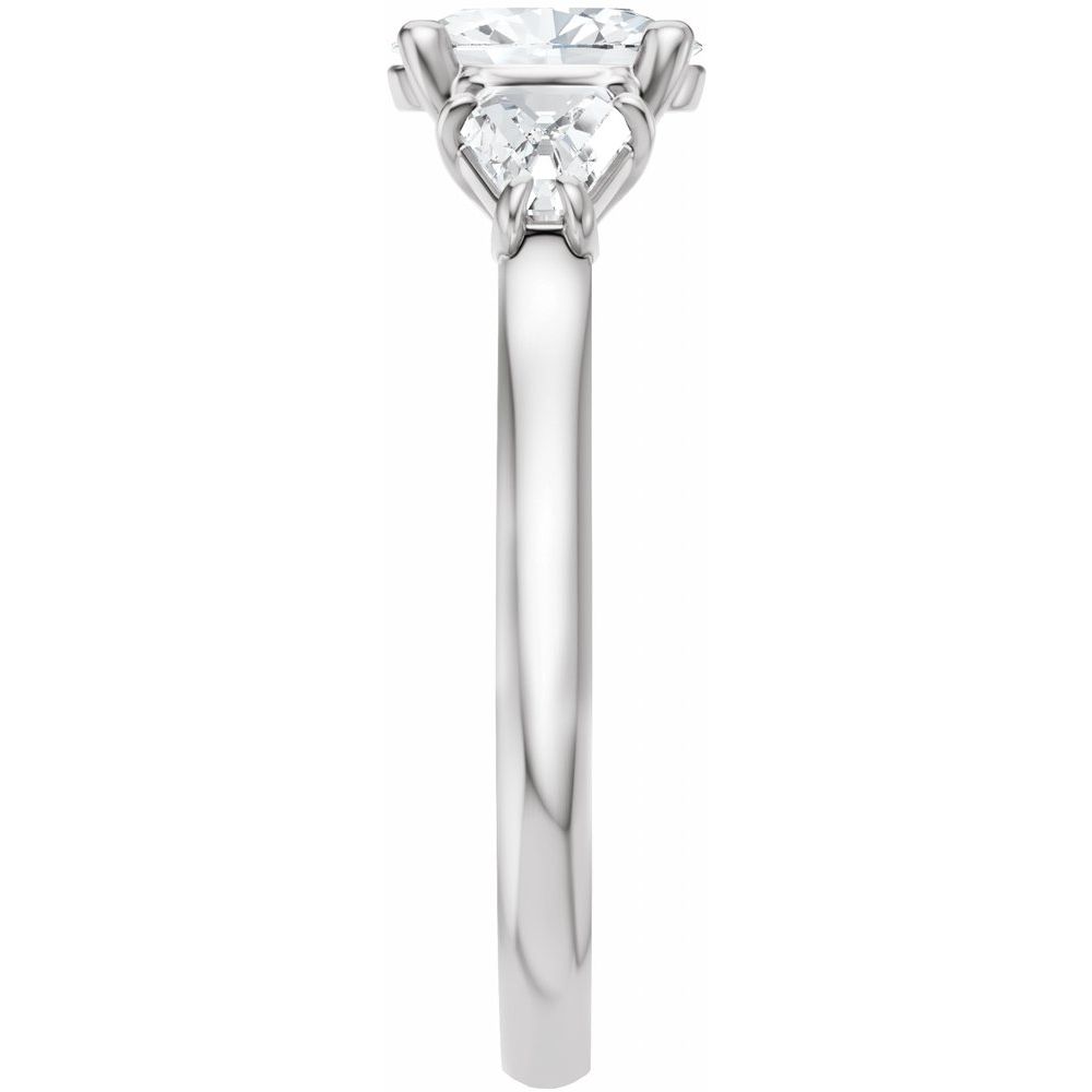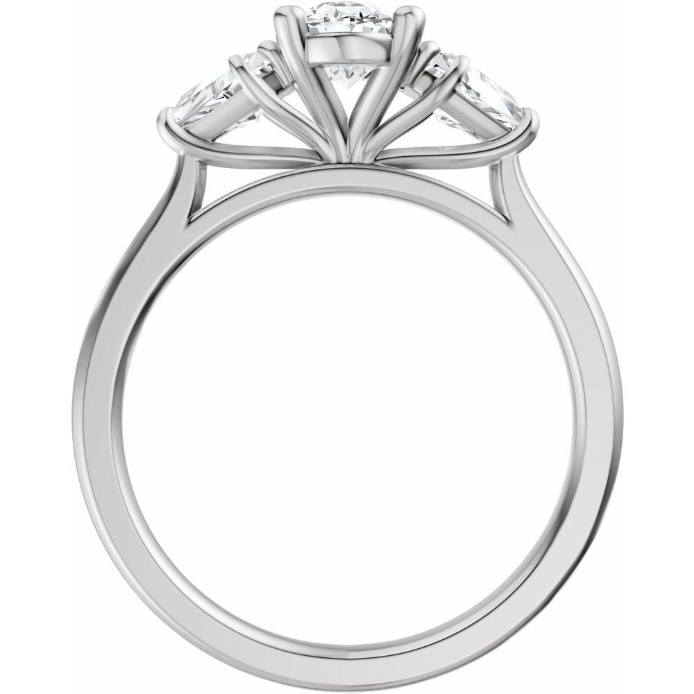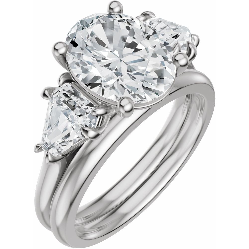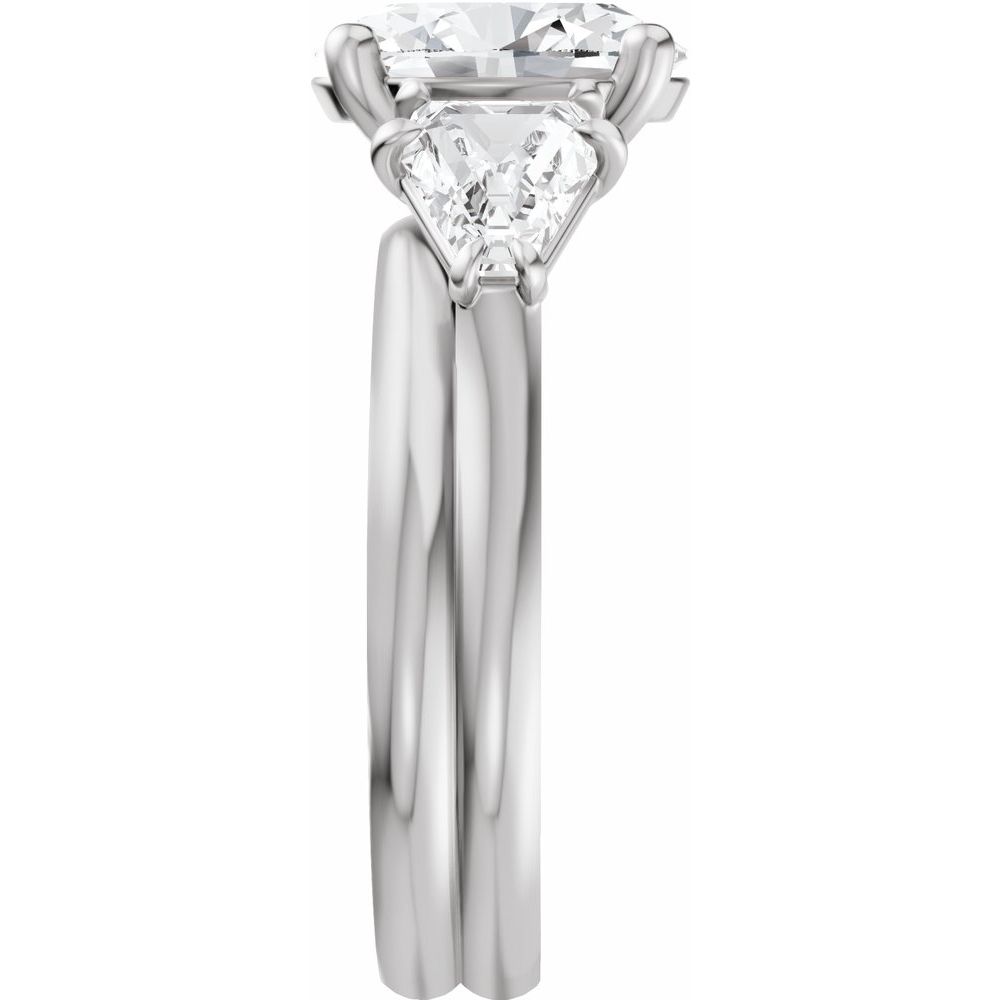 Oval Three-Stone Diamond Engagement Ring with Trillion Side Diamonds - Set on 14k Gold