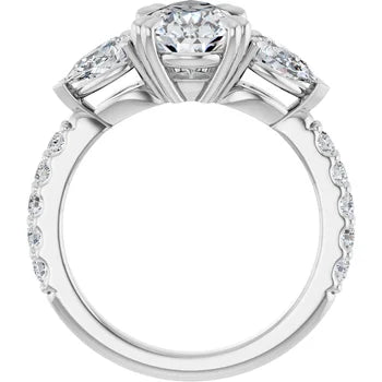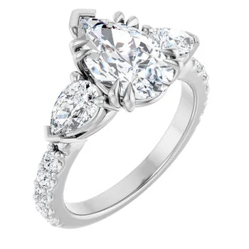 Pear Shaped Diamond Three Stone Engagement Ring - Set on 14k Gold