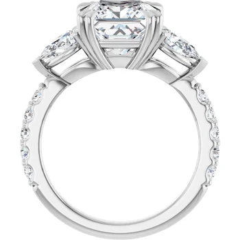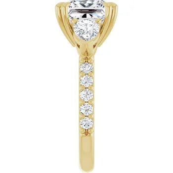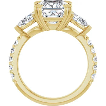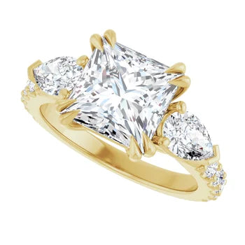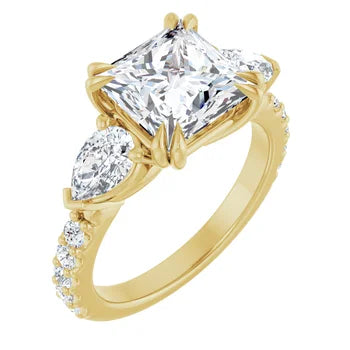 Princess Cut and Pear Diamond Three Stone Engagment Ring - Set on 14k Gold